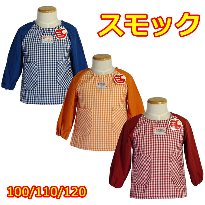 送料無料 子供用 スモック 男女兼用 オールシーズン 格子柄 ギンガムチェック 幼児 保育園 幼稚園 父の日ギフト
